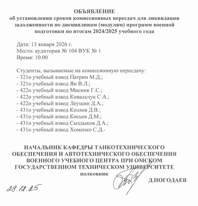 от военного учебного центра при ОмГТУ – полковник Тенчурин Анатолий Юрьевич, тел. 89139791177.